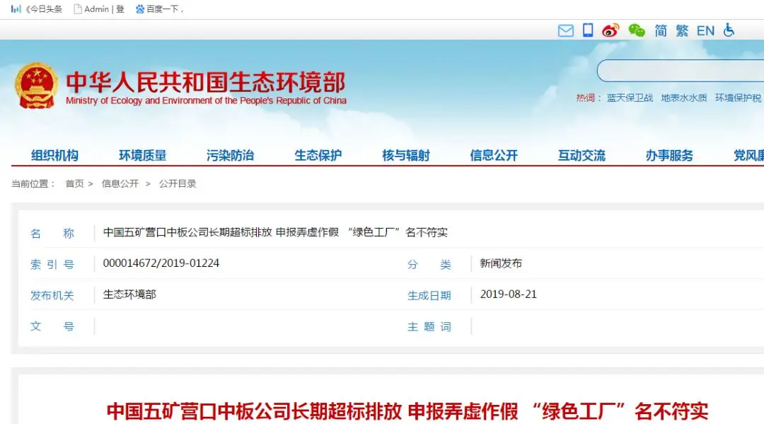 五礦營口中板公司長期標排放 申報弄虛作假 “綠色工廠”名不符實