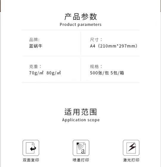 藍(lán)蝸牛 A4 復(fù)印紙 500張/包 5包/箱